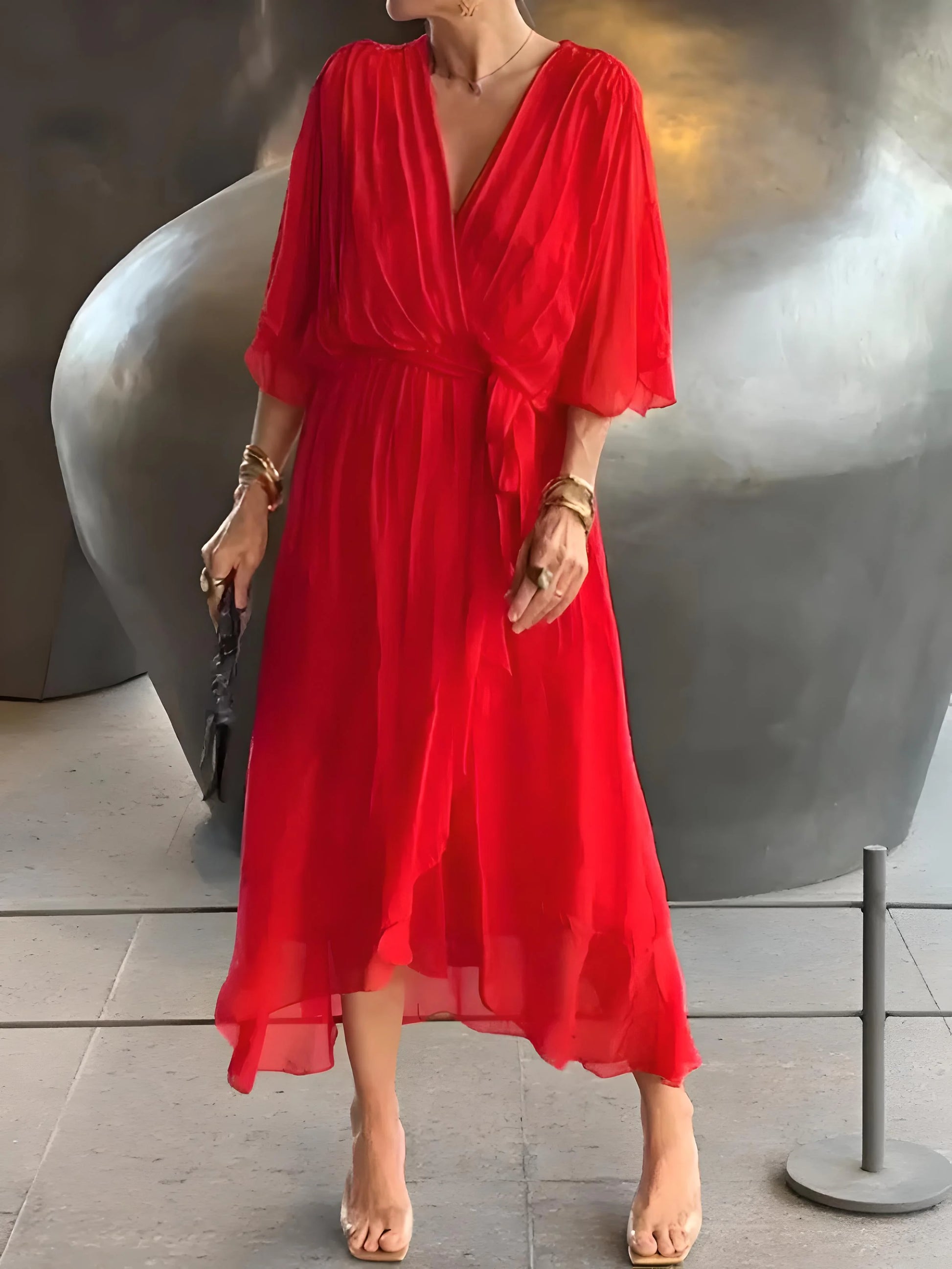 Ontdek de Elin™ zomerjurk met V-hals, perfect voor degenen die op zoek zijn naar een luchtige, stijlvolle jurk voor de zomer van 2025.